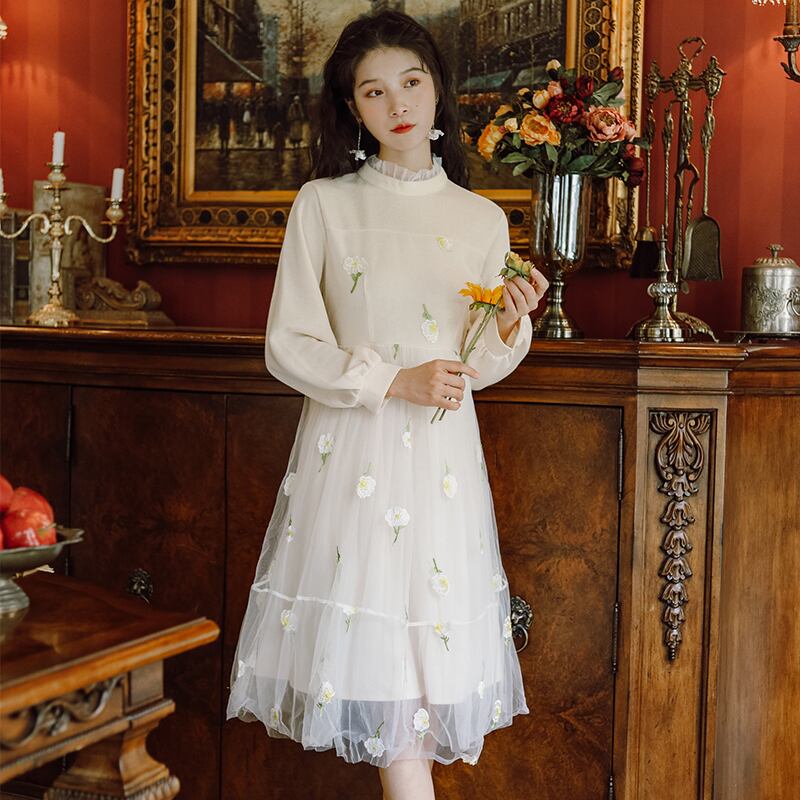 ♥ スタイルオレンジスカート 刺繍メッシュドレス オータムウィンター 秋物 冬物 ステッチ ♥韓国系 欧州 ヨーロッパ インテリア ハイブランド ビジュー 宝石 ダイヤモンド ラインストーン ガーリー お呼ばれ カジュアル フェミニン エレガント 同窓会 女子会 海 食事会 合コン パーティー ド派手 メイク BTS TWICE NiziU BLACKPINK AA70564223125 | miel style clothing