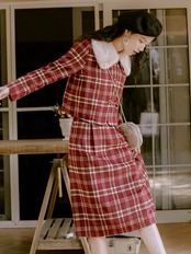♥ ウィンタースタイルレッド格子柄ドレス 冬物 ♥韓国系 欧州 ヨーロッパ インテリア ハイブランド ビジュー 宝石 ダイヤモンド ラインストーン ガーリー お呼ばれ カジュアル フェミニン エレガント 同窓会 女子会 海 食事会 合コン パーティー ド派手 メイク BTS TWICE NiziU BLACKPINK AA88116601374 | miel style clothing