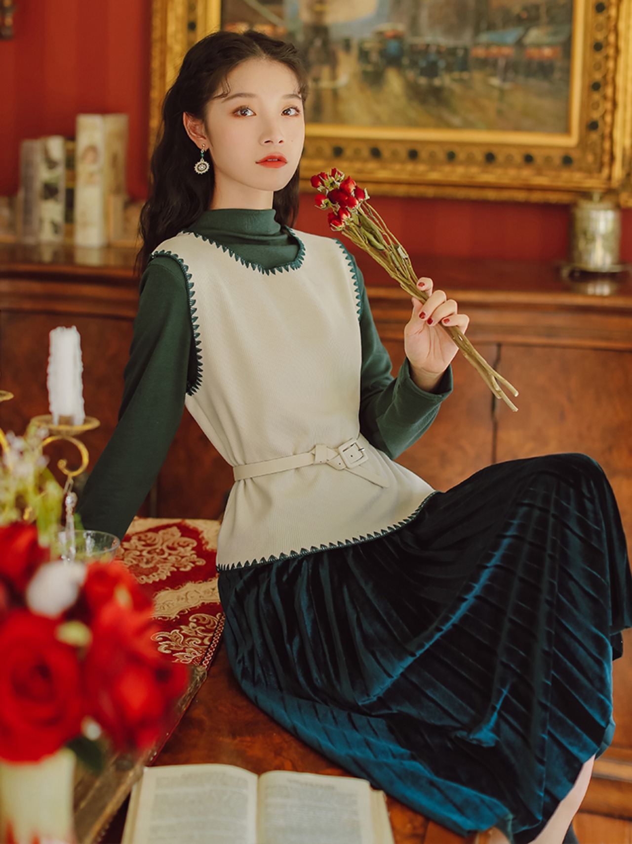 ♥ スタイルスタンダードニットベルベットプリーツドレス レトロ ♥韓国系 欧州 ヨーロッパ インテリア ハイブランド ビジュー 宝石 ダイヤモンド ラインストーン ガーリー お呼ばれ カジュアル フェミニン エレガント 同窓会 女子会 海 食事会 合コン パーティー ド派手 メイク BTS TWICE NiziU BLACKPINK AA13475218774 | miel style clothing