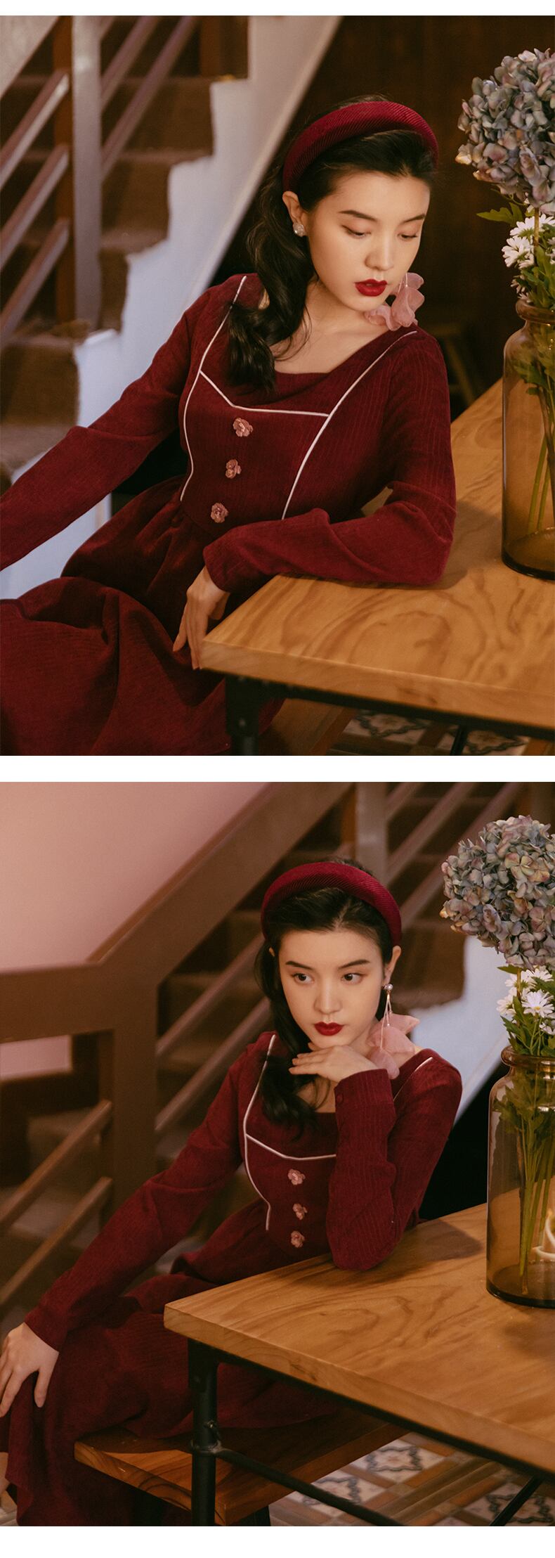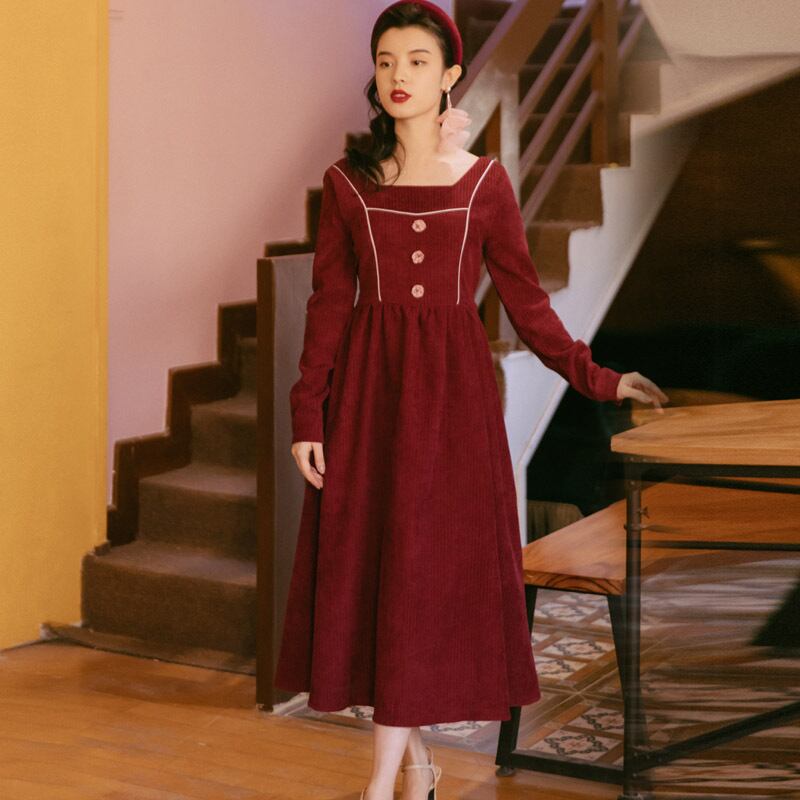 ♥ スタンダードスタイルレッドコーデュロイドレス オータムウィンター レトロ 秋物 冬物 フラワーデザイン ♥韓国系 欧州 ヨーロッパ インテリア ハイブランド ビジュー 宝石 ダイヤモンド ラインストーン ガーリー お呼ばれ カジュアル フェミニン エレガント 同窓会 女子会 海 食事会 合コン パーティー ド派手 メイク BTS TWICE NiziU BLACKPINK AA53337346543 | miel style clothing