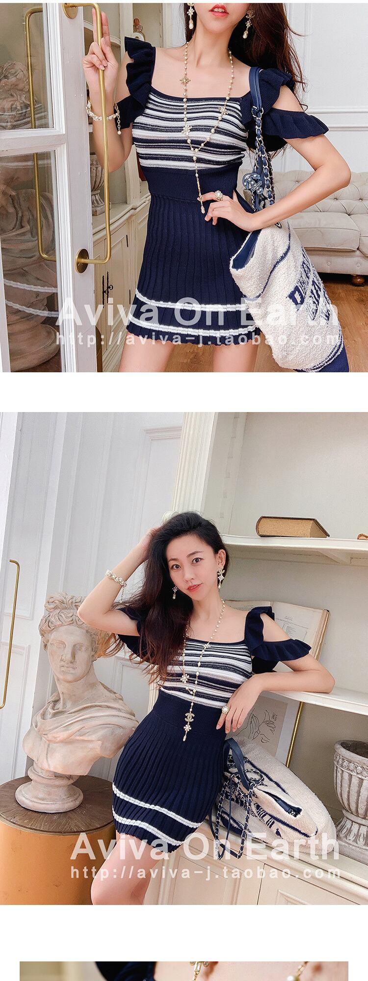 ♥ ホワイトネイビースタイルニットドレス レディース ブルー ♥韓国系 欧州 ヨーロッパ インテリア ハイブランド ビジュー 宝石 ダイヤモンド ラインストーン ガーリー お呼ばれ カジュアル フェミニン エレガント 同窓会 女子会 海 食事会 合コン パーティー ド派手 メイク BTS TWICE NiziU BLACKPINK BB70465093815 | miel style clothing