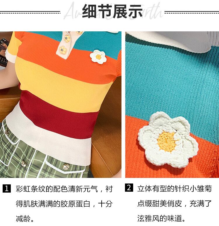 ♥ ニットTシャツ 半袖スリーブストライプカラーウィンター薄手トップス ショート ハーフスリーブ 冬物 ♥韓国系 欧州 ヨーロッパ インテリア ハイブランド ビジュー 宝石 ダイヤモンド ラインストーン ガーリー お呼ばれ カジュアル フェミニン エレガント 同窓会 女子会 海 食事会 合コン パーティー ド派手 メイク BTS TWICE NiziU BLACKPINK BB11336519484 | miel style clothing