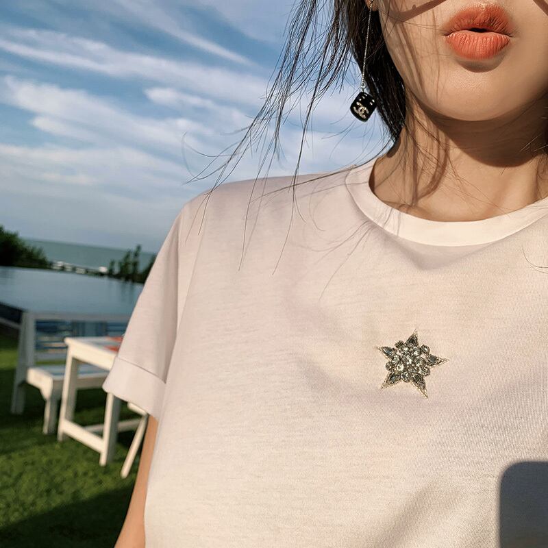 ♥ ホワイトTシャツ ルーズ薄手トップス コットン スプリング 春物 ウィンター 冬物 ピュア ♥韓国系 欧州 ヨーロッパ インテリア ハイブランド ビジュー 宝石 ダイヤモンド ラインストーン ガーリー お呼ばれ カジュアル フェミニン エレガント 同窓会 女子会 海 食事会 合コン パーティー ド派手 メイク BTS TWICE NiziU BLACKPINK BB50264833682 | miel style clothing