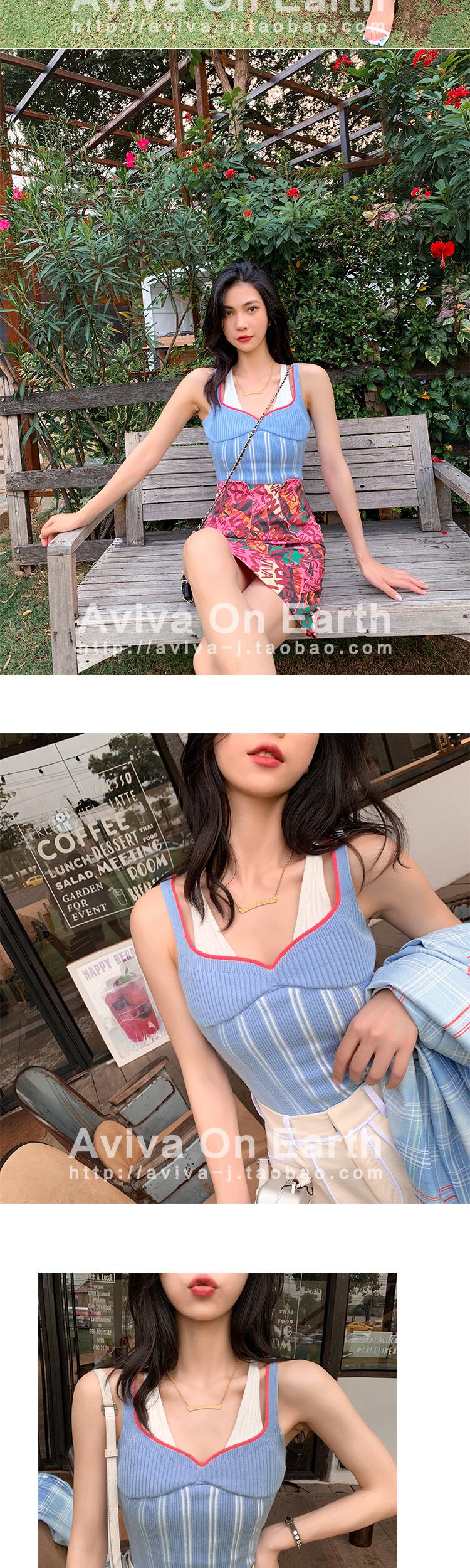 ♥ ブルーニットレディースVネックノースリーブトップス ♥韓国系 欧州 ヨーロッパ インテリア ハイブランド ビジュー 宝石 ダイヤモンド ラインストーン ガーリー お呼ばれ カジュアル フェミニン エレガント 同窓会 女子会 海 食事会 合コン パーティー ド派手 メイク BTS TWICE NiziU BLACKPINK BB30192092699 | miel style clothing