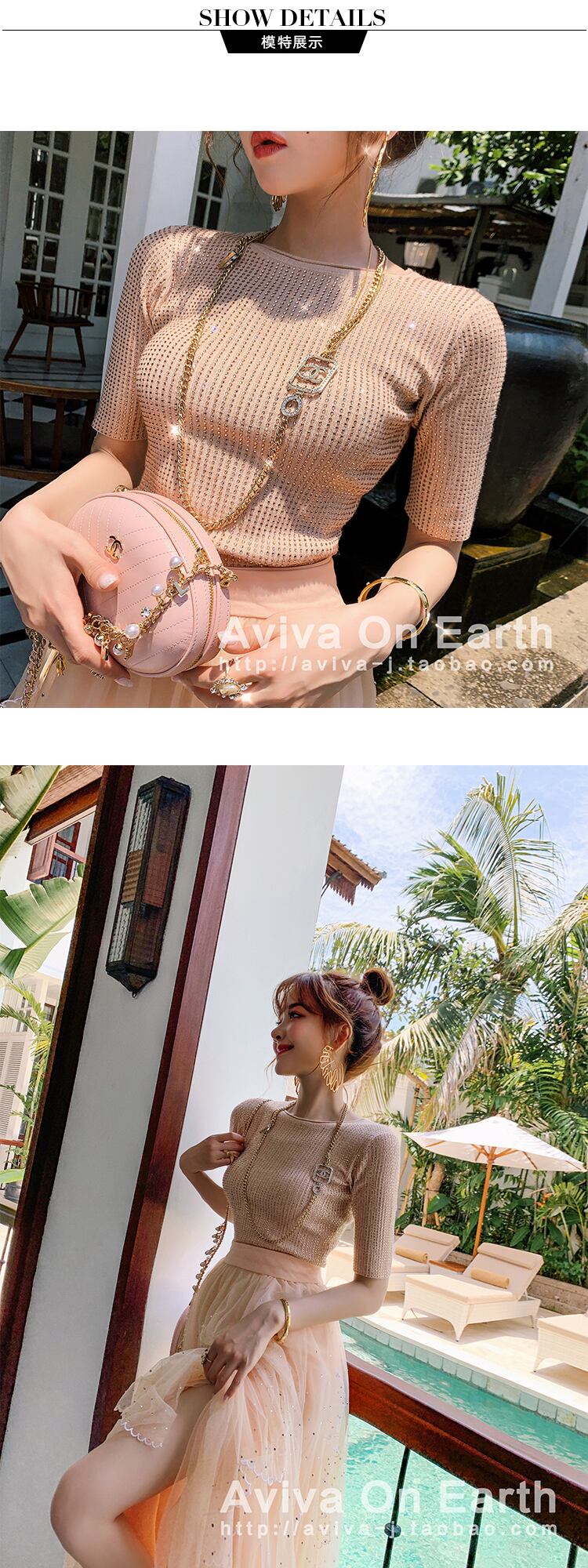 ♥ ラインストーンニット半袖スリーブラウンドネックプルオーバー スリム薄手Tシャツ ショート ハーフスリーブ Oネック ♥韓国系 欧州 ヨーロッパ インテリア ハイブランド ビジュー 宝石 ダイヤモンド ラインストーン ガーリー お呼ばれ カジュアル フェミニン エレガント 同窓会 女子会 海 食事会 合コン パーティー ド派手 メイク BTS TWICE NiziU BLACKPINK BB93013562261 | miel style clothing