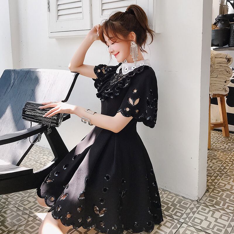 ♥ レースドレス カラー ブラック ♥韓国系 欧州 ヨーロッパ インテリア ハイブランド ビジュー 宝石 ダイヤモンド ラインストーン ガーリー お呼ばれ カジュアル フェミニン エレガント 同窓会 女子会 海 食事会 合コン パーティー ド派手 メイク BTS TWICE NiziU BLACKPINK BB29546909186 | miel style clothing
