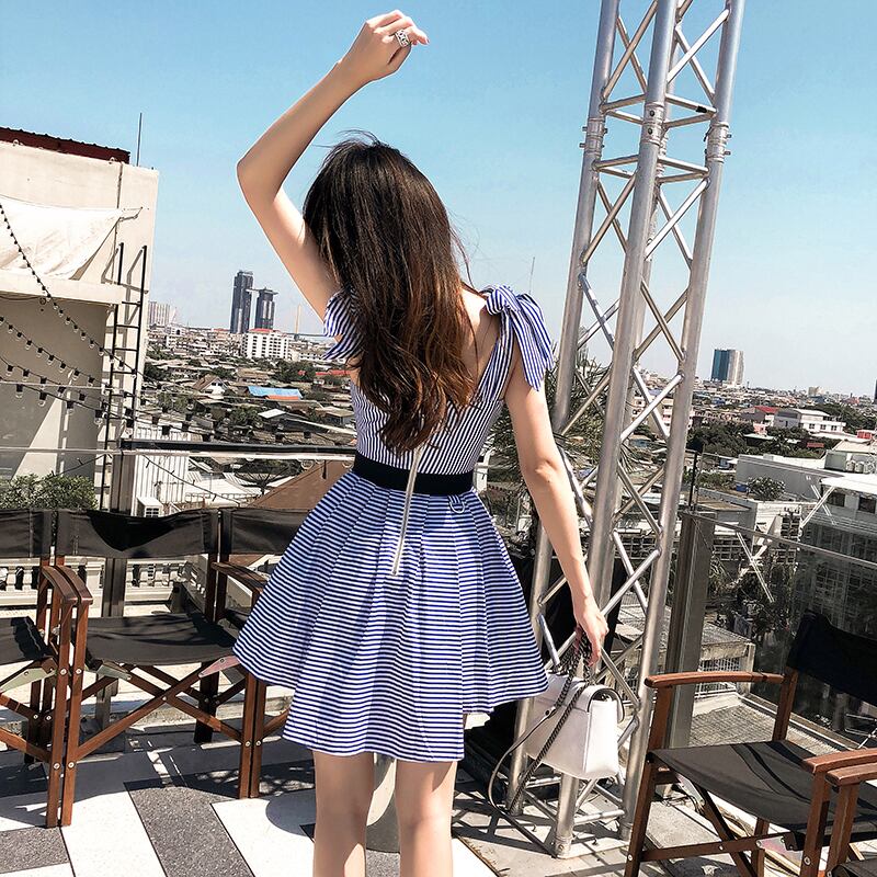 ♥ ストライプドレス ♥韓国系 欧州 ヨーロッパ インテリア ハイブランド ビジュー 宝石 ダイヤモンド ラインストーン ガーリー お呼ばれ カジュアル フェミニン エレガント 同窓会 女子会 海 食事会 合コン パーティー ド派手 メイク BTS TWICE NiziU BLACKPINK BB45026483977 | miel style clothing