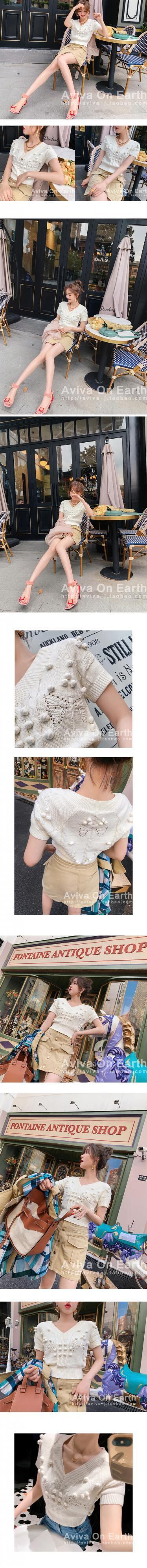 ♥ ショートセーター スプリングVネックシャツ ベージュ 春物 ♥韓国系 欧州 ヨーロッパ インテリア ハイブランド ビジュー 宝石 ダイヤモンド ラインストーン ガーリー お呼ばれ カジュアル フェミニン エレガント 同窓会 女子会 海 食事会 合コン パーティー ド派手 メイク BTS TWICE NiziU BLACKPINK BB36639297417 | miel style clothing