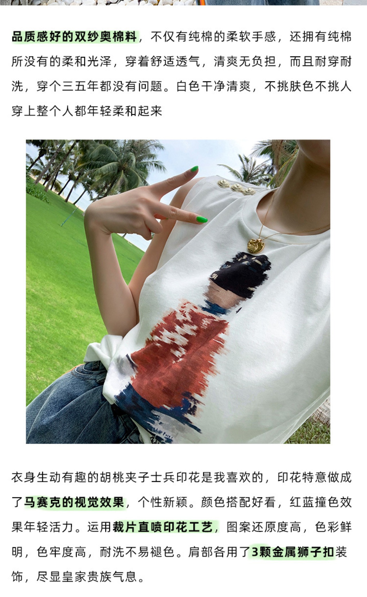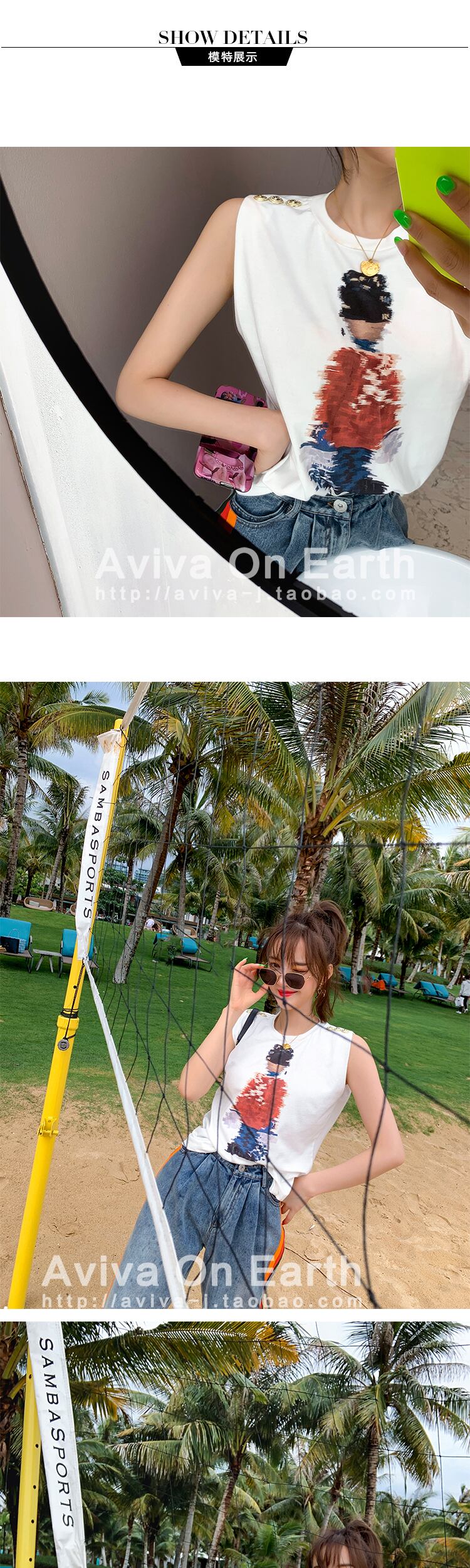 ♥ ホワイトプリントノースリーブTシャツ ルーズトップス コットン ピュア ♥♥欧州 ヨーロッパ アイドル ZARA フォーエバー21 GAP H&M WEGO HONEYS MUJI GU UNIQLO dholic babyGAP FOREVER21 Old Navy 韓国 K-POP Kpop 韓流スター BTS TWICE NiziU BLACKPINK ルイ・ヴィトン エルメス グッチ プラダ イブサンローラン シャネル ラフシモンズ BB8007364424 | miel style clothing