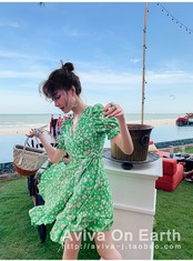 ♥ フローラルドレス スリーブVネックグリーンFlowerデザイン スカート スプリング 春物 花柄 フラワーデザイン ♥♥欧州 ヨーロッパ アイドル ZARA フォーエバー21 GAP H&M WEGO HONEYS MUJI GU UNIQLO dholic babyGAP FOREVER21 Old Navy 韓国 K-POP Kpop 韓流スター BTS TWICE NiziU BLACKPINK ルイ・ヴィトン エルメス グッチ プラダ イブサンローラン シャネル ラフシモンズ BB692102 | miel style clothing