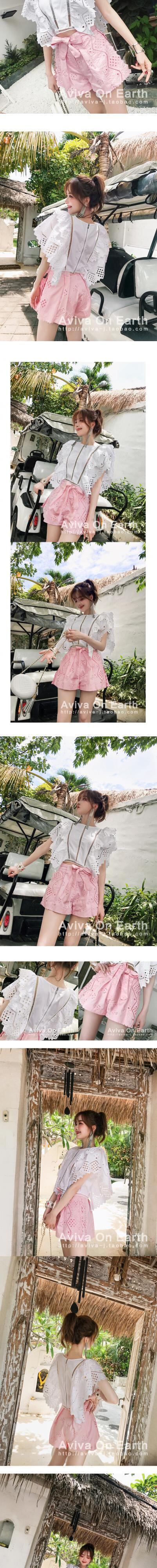 色:白いトップスポット,ピンクのショートパンツ