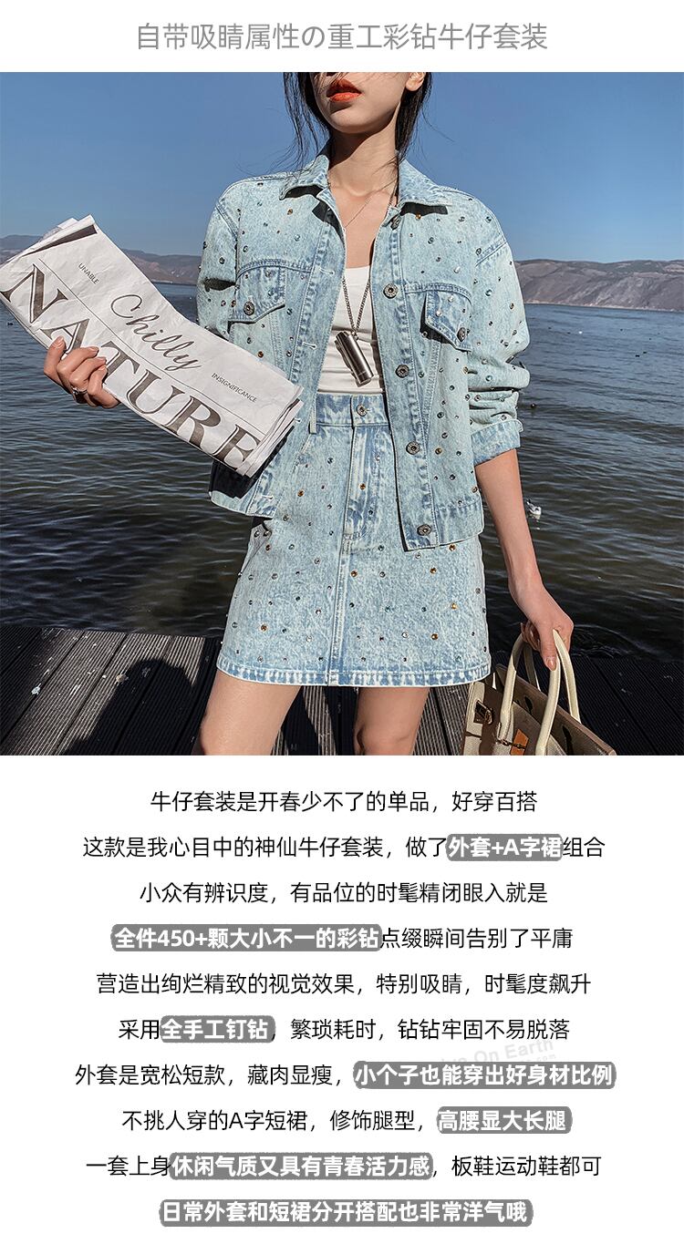 色:重工業カラーダイヤモンドデニムジャケット,重工業カラーのダイヤモンドデニムスカート,重工業カラーダイヤモンドデニムスーツ