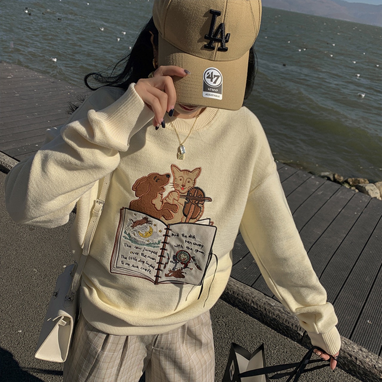 ♥ ルーズ刺繍セーター ♥♥欧州 ヨーロッパ アイドル ZARA フォーエバー21 GAP H&M WEGO HONEYS MUJI GU UNIQLO dholic babyGAP FOREVER21 Old Navy 韓国 K-POP Kpop 韓流スター BTS TWICE NiziU BLACKPINK ルイ・ヴィトン エルメス グッチ プラダ イブサンローラン シャネル ラフシモンズ BB79737644928 | miel style clothing