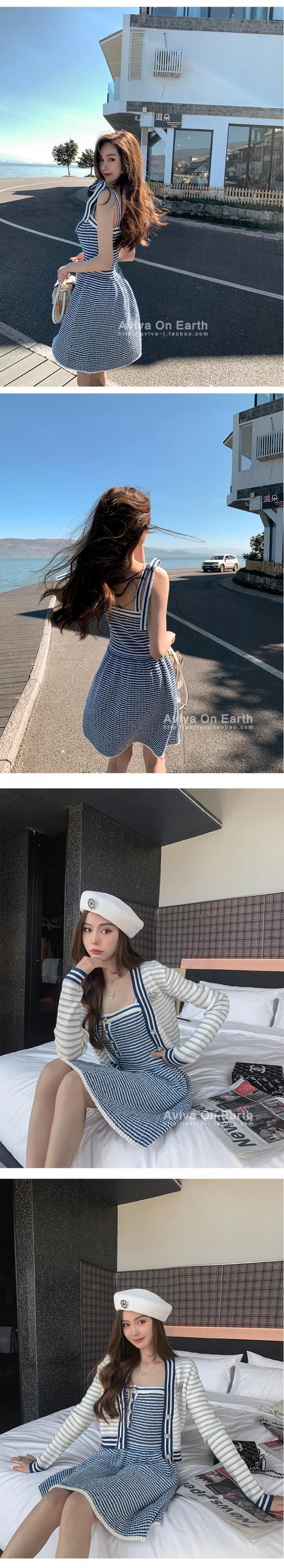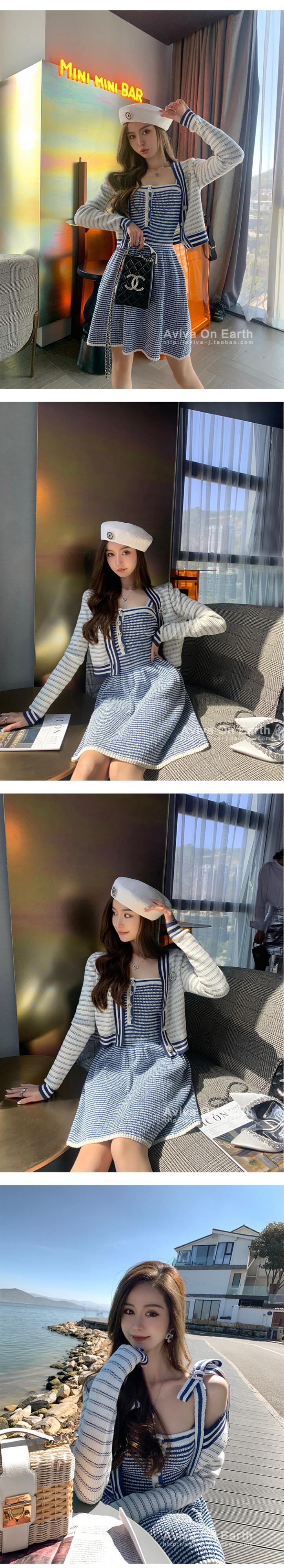 色:ブルー地中海カーディガン,小さなネイビードレス,スーツ