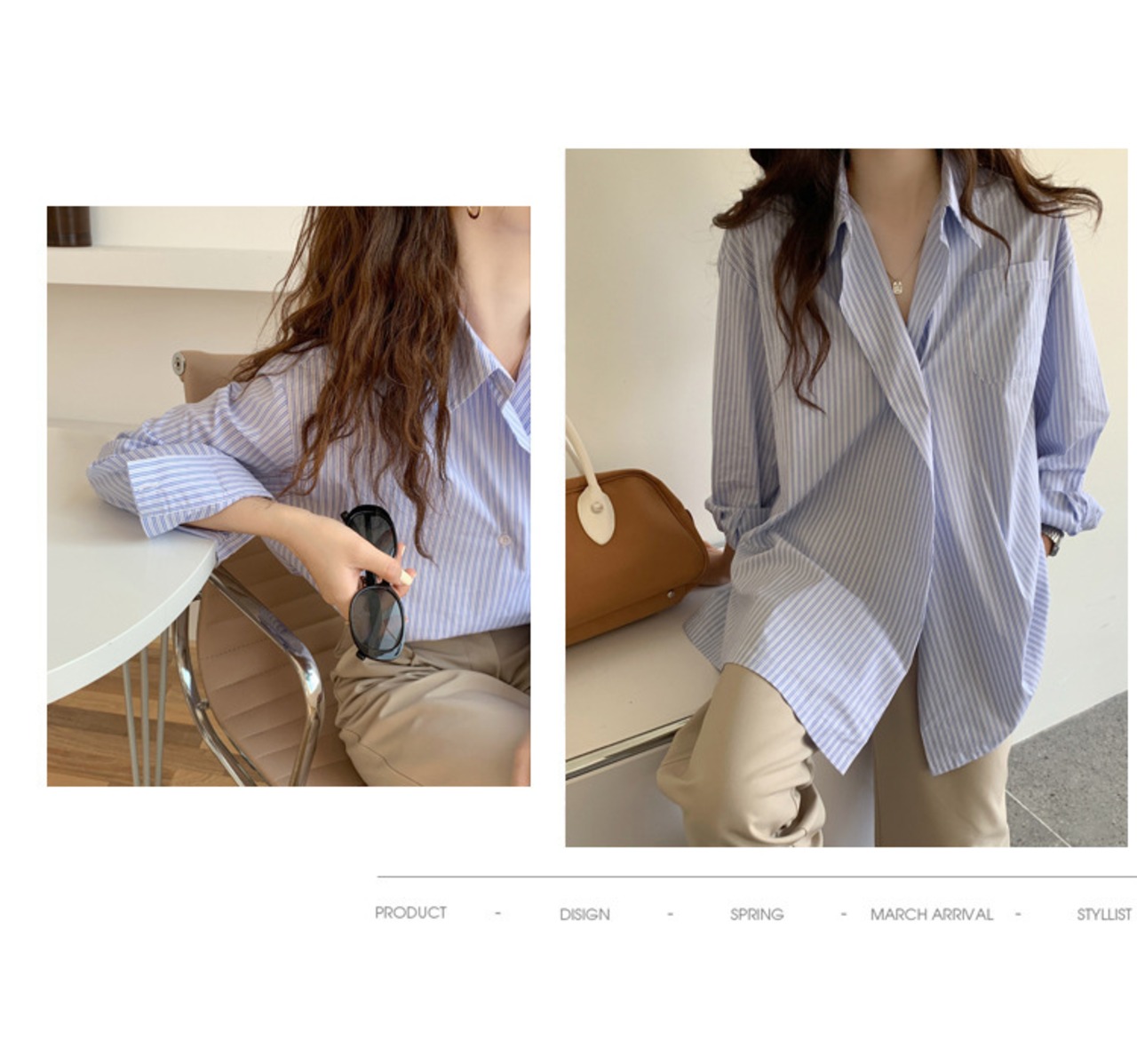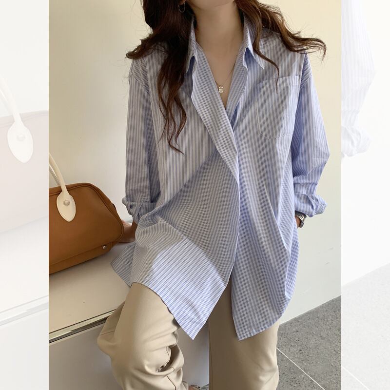 ♥ スプリングシャツ スタイルブルーホワイトストライプルーズ 春物 ♥欧州 ヨーロッパ アイドル ZARA フォーエバー21 GAP H&M WEGO HONEYS MUJI GU UNIQLO dholic babyGAP FOREVER21 Old Navy 韓国 K-POP Kpop 韓流スター BTS TWICE NiziU BLACKPINK ルイ・ヴィトン エルメス グッチ プラダ イブサンローラン シャネル ラフシモンズ CC58085969893 | miel style clothing