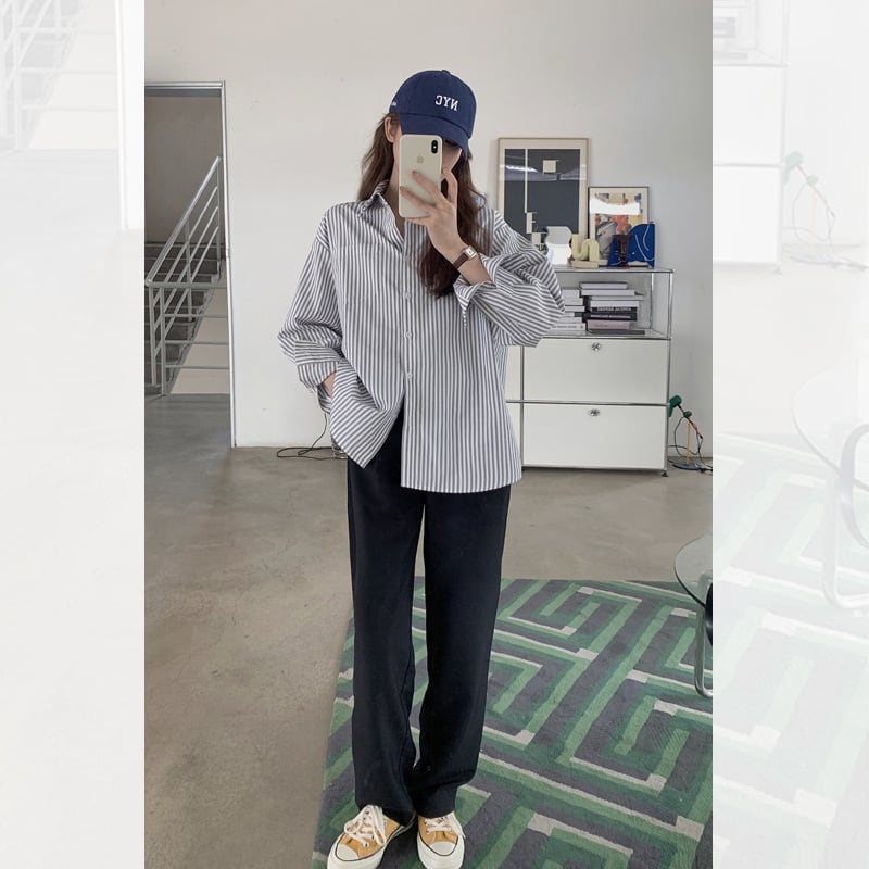 ♥ スタイルシャツ スプリングサマースリムストライプ ロング 春物 夏物 ♥欧州 ヨーロッパ アイドル ZARA フォーエバー21 GAP H&M WEGO HONEYS MUJI GU UNIQLO dholic babyGAP FOREVER21 Old Navy 韓国 K-POP Kpop 韓流スター BTS TWICE NiziU BLACKPINK ルイ・ヴィトン エルメス グッチ プラダ イブサンローラン シャネル ラフシモンズ CC94260050980 | miel style clothing