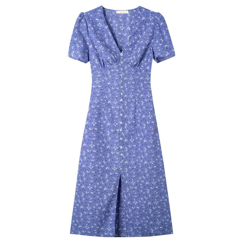 ♥ フローラルドレス スプリングスタンダードVネックロングシフォンスカート スリーブ レトロ 春物 花柄 パープル ♥欧州 ヨーロッパ アイドル ZARA フォーエバー21 GAP H&M WEGO HONEYS MUJI GU UNIQLO dholic babyGAP FOREVER21 Old Navy 韓国 K-POP Kpop 韓流スター BTS TWICE NiziU BLACKPINK ルイ・ヴィトン エルメス グッチ プラダ イブサンローラン シャネル ラフシモンズ CC505524442 | miel style clothing