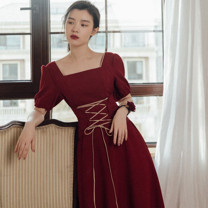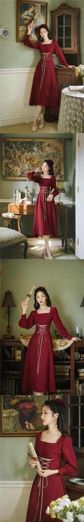 色:半袖ブルゴーニュドレス,長袖バーガンディドレス