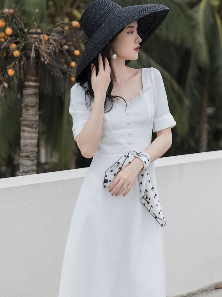 ♥ ホワイトドレス スタンダードスタイルスリムサマー レトロ 大人ガーリー スウィート キュート カジュアル 夏物 ♥♥欧州 ヨーロッパ アイドル ZARA フォーエバー21 GAP H&M WEGO HONEYS MUJI GU UNIQLO dholic babyGAP FOREVER21 Old Navy 韓国 K-POP Kpop 韓流スター BTS TWICE NiziU BLACKPINK ルイ・ヴィトン エルメス グッチ プラダ イブサンローラン シャネル ラフシモンズ AA82633881 | miel style clothing