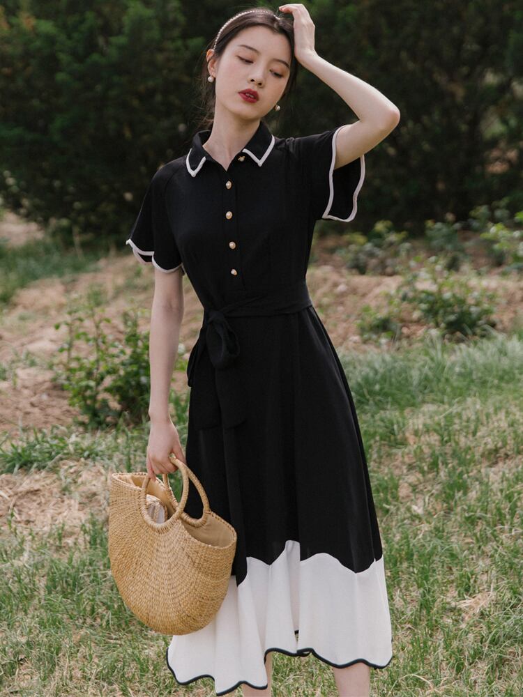 ♥ スタンダードスタイルブラックドレス ウェスト薄手サマー レトロ 夏物 ♥♥欧州 ヨーロッパ アイドル ZARA フォーエバー21 GAP H&M WEGO HONEYS MUJI GU UNIQLO dholic babyGAP FOREVER21 Old Navy 韓国 K-POP Kpop 韓流スター BTS TWICE NiziU BLACKPINK ルイ・ヴィトン エルメス グッチ プラダ イブサンローラン シャネル ラフシモンズ AA69441338631 | miel style clothing
