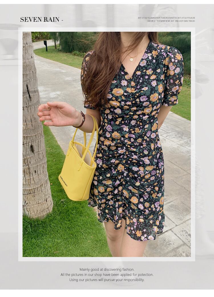 ♥ ブラックフローラルドレス ウェストサマースタイルVネックショートスタンダードシフォン レトロ 夏物 花柄 ♥欧州 ヨーロッパ アイドル ZARA フォーエバー21 GAP H&M WEGO HONEYS MUJI GU UNIQLO dholic babyGAP FOREVER21 Old Navy 韓国 K-POP Kpop 韓流スター BTS TWICE NiziU BLACKPINK ルイ・ヴィトン エルメス グッチ プラダ イブサンローラン シャネル ラフシモンズ CC57976038999 | miel style clothing