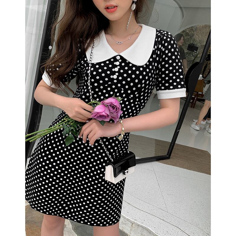 ♥ ブラック水玉カラーAラインニットドレス サマー エレガント 夏物 ♥♥欧州 ヨーロッパ アイドル ZARA フォーエバー21 GAP H&M WEGO HONEYS MUJI GU UNIQLO dholic babyGAP FOREVER21 Old Navy 韓国 K-POP Kpop 韓流スター BTS TWICE NiziU BLACKPINK ルイ・ヴィトン エルメス グッチ プラダ イブサンローラン シャネル ラフシモンズ BB69028115524 | miel style clothing