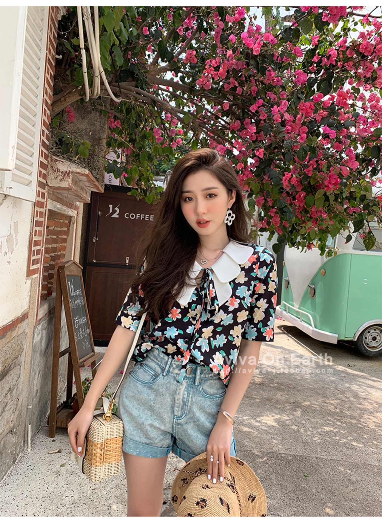 ♥ ブラックフローラルシフォンブラウス ショートシャツ 大人ガーリー スウィート キュート カジュアル 花柄 ♥♥欧州 ヨーロッパ アイドル ZARA フォーエバー21 GAP H&M WEGO HONEYS MUJI GU UNIQLO dholic babyGAP FOREVER21 Old Navy 韓国 K-POP Kpop 韓流スター BTS TWICE NiziU BLACKPINK ルイ・ヴィトン エルメス グッチ プラダ イブサンローラン シャネル ラフシモンズ BB29322299033 | miel style clothing