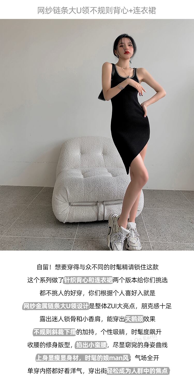 ♥ チェーン ブラック薄手ドレス レディースサマー 夏物 ♥♥欧州 ヨーロッパ アイドル ZARA フォーエバー21 GAP H&M WEGO HONEYS MUJI GU UNIQLO dholic babyGAP FOREVER21 Old Navy 韓国 K-POP Kpop 韓流スター BTS TWICE NiziU BLACKPINK ルイ・ヴィトン エルメス グッチ プラダ イブサンローラン シャネル ラフシモンズ BB2670874381 | miel style clothing