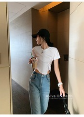 ♥ ホワイトウェスト半袖スリーブTシャツ スリム薄手トップス ショート コットン ハーフスリーブ ピュア ♥♥欧州 ヨーロッパ アイドル ZARA フォーエバー21 GAP H&M WEGO HONEYS MUJI GU UNIQLO dholic babyGAP FOREVER21 Old Navy 韓国 K-POP Kpop 韓流スター BTS TWICE NiziU BLACKPINK ルイ・ヴィトン エルメス グッチ プラダ イブサンローラン シャネル ラフシモンズ BB30496657572 | miel style clothing