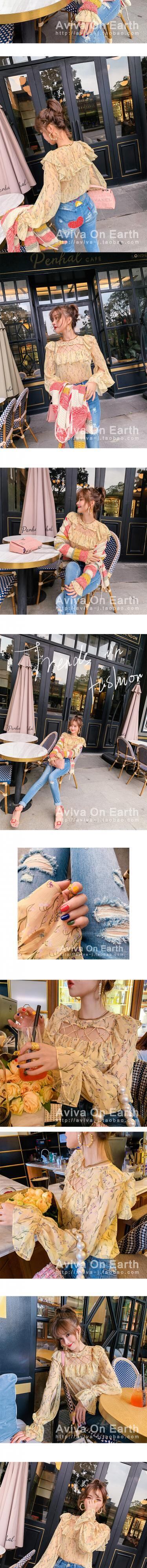 ♥ シフォンシャツ スタイルスプリングイエローフローラルラウンドネックブラウス レディース ロング 春物 花柄 Oネック ♥♥欧州 ヨーロッパ アイドル ZARA フォーエバー21 GAP H&M WEGO HONEYS MUJI GU UNIQLO dholic babyGAP FOREVER21 Old Navy 韓国 K-POP Kpop 韓流スター BTS TWICE NiziU BLACKPINK ルイ・ヴィトン エルメス グッチ プラダ イブサンローラン シャネル ラフシモンズ BB77735 | miel style clothing