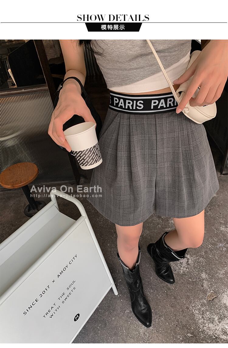 ♥ ストレッチウェストグレー格子柄ワイドレッグショーツ サマー薄手 エラスティック 伸縮 夏物 ブルマー ワイドパンツ ♥♥欧州 ヨーロッパ アイドル ZARA フォーエバー21 GAP H&M WEGO HONEYS MUJI GU UNIQLO dholic babyGAP FOREVER21 Old Navy 韓国 K-POP Kpop 韓流スター BTS TWICE NiziU BLACKPINK ルイ・ヴィトン エルメス グッチ プラダ イブサンローラン シャネル ラフシモンズ BB496017 | miel style clothing