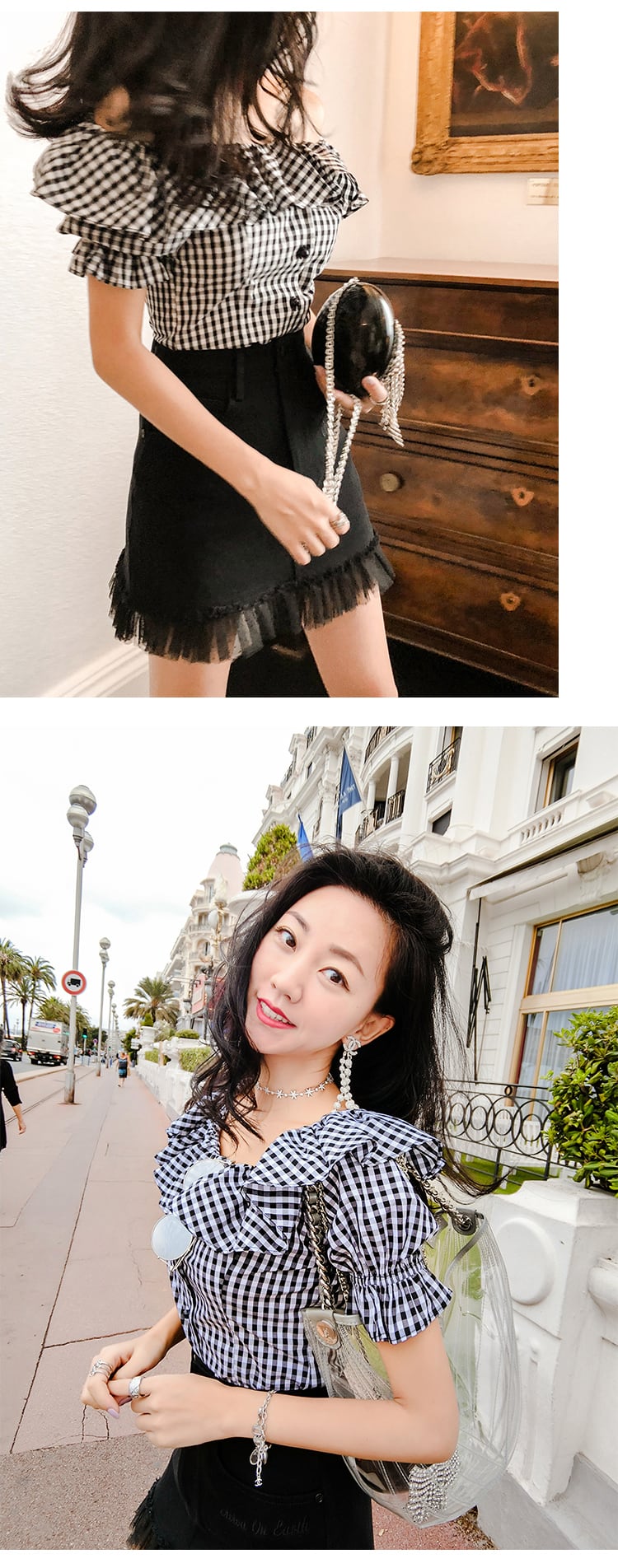 ♥ ブラックホワイト格子柄スリーブトップス サマースリムフィットカジュアルシャツ 夏物 ♥♥欧州 ヨーロッパ アイドル ZARA フォーエバー21 GAP H&M WEGO HONEYS MUJI GU UNIQLO dholic babyGAP FOREVER21 Old Navy 韓国 K-POP Kpop 韓流スター BTS TWICE NiziU BLACKPINK ルイ・ヴィトン エルメス グッチ プラダ イブサンローラン シャネル ラフシモンズ BB82369109162 | miel style clothing