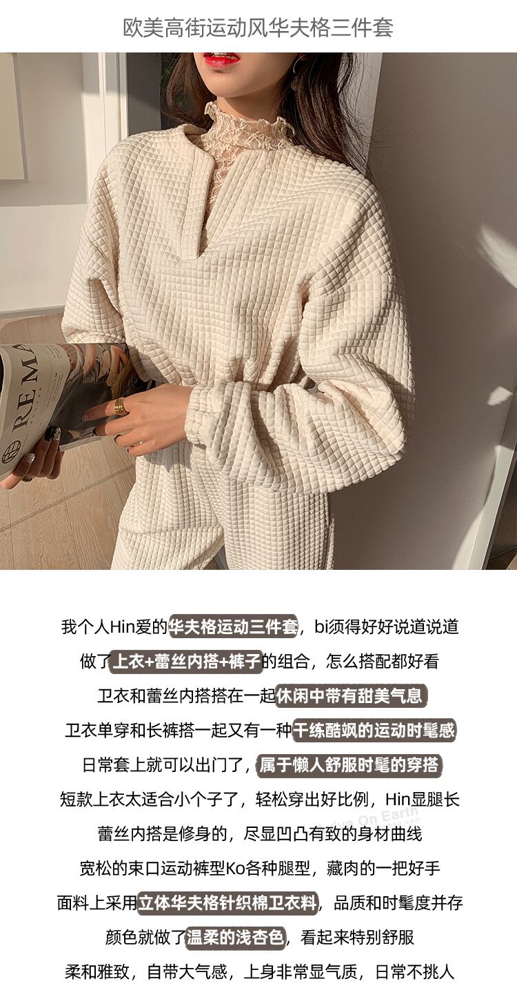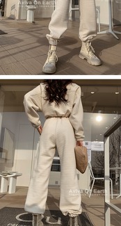 色:クリームワッフルセーター在庫あり,クリームワッフルパンツ入荷,レースは履きやすく、ベーススポット,スリーピースパーカー+スウェットパンツ+ベース在庫あり