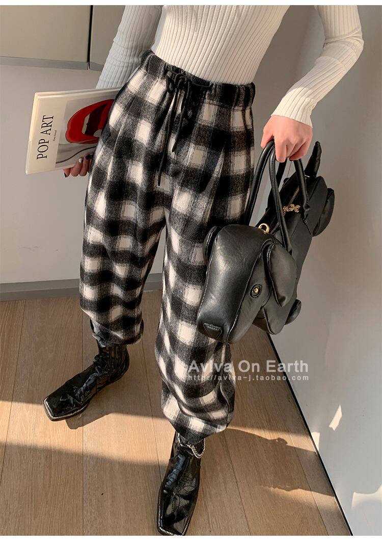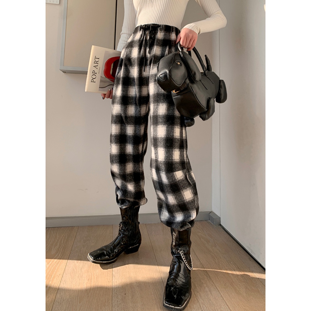 ♥ ブラックホワイト格子柄ストレッチウェストルーズパンツ レディース エラスティック 伸縮 ♥♥欧州 ヨーロッパ アイドル ZARA フォーエバー21 GAP H&M WEGO HONEYS MUJI GU UNIQLO dholic babyGAP FOREVER21 Old Navy 韓国 K-POP Kpop 韓流スター BTS TWICE NiziU BLACKPINK ルイ・ヴィトン エルメス グッチ プラダ イブサンローラン シャネル ラフシモンズ BB20348550971 | miel style clothing