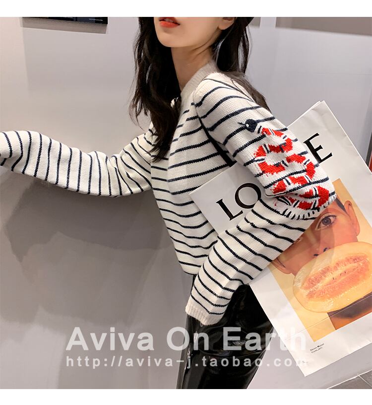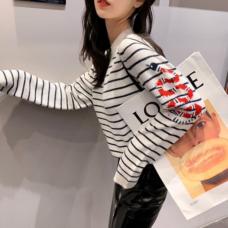♥ 刺繍パターンストライプラウンドネック長袖スリーブセーター プルオーバー ルーズ ロング サマー 夏物 オータム 秋物 Oネック ♥♥欧州 ヨーロッパ アイドル ZARA フォーエバー21 GAP H&M WEGO HONEYS MUJI GU UNIQLO dholic babyGAP FOREVER21 Old Navy 韓国 K-POP Kpop 韓流スター BTS TWICE NiziU BLACKPINK ルイ・ヴィトン エルメス グッチ プラダ イブサンローラン シャネル ラフシモンズ BB | miel style clothing