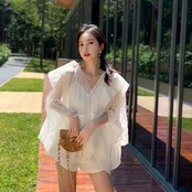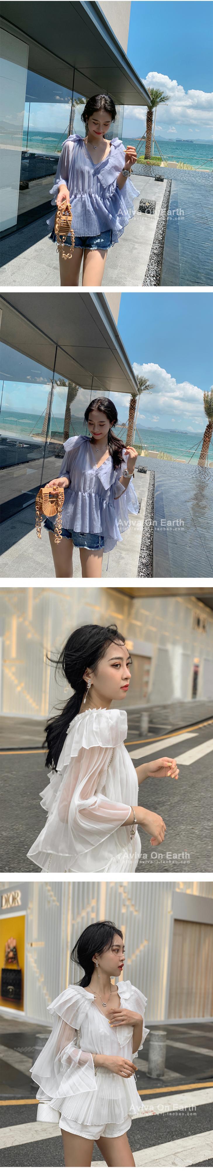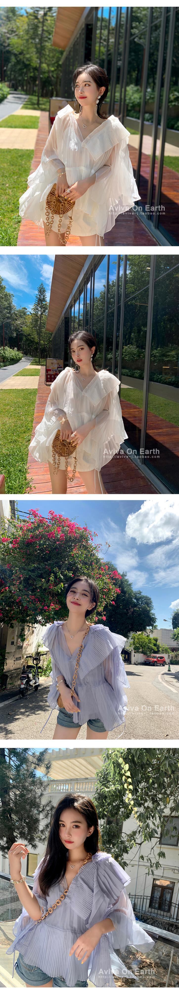 ♥ Vネックメッシュサマープリーツウェストショート薄手トップス ホワイト 夏物 パープル ♥♥欧州 ヨーロッパ アイドル ZARA フォーエバー21 GAP H&M WEGO HONEYS MUJI GU UNIQLO dholic babyGAP FOREVER21 Old Navy 韓国 K-POP Kpop 韓流スター BTS TWICE NiziU BLACKPINK ルイ・ヴィトン エルメス グッチ プラダ イブサンローラン シャネル ラフシモンズ BB28093040474 | miel style clothing