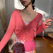 ♥ メタルバックルVネックニットカーディガンサマー薄手ブラウス ロング 夏物 ♥♥欧州 ヨーロッパ アイドル ZARA フォーエバー21 GAP H&M WEGO HONEYS MUJI GU UNIQLO dholic babyGAP FOREVER21 Old Navy 韓国 K-POP Kpop 韓流スター BTS TWICE NiziU BLACKPINK ルイ・ヴィトン エルメス グッチ プラダ イブサンローラン シャネル ラフシモンズ BB13994439827 | miel style clothing