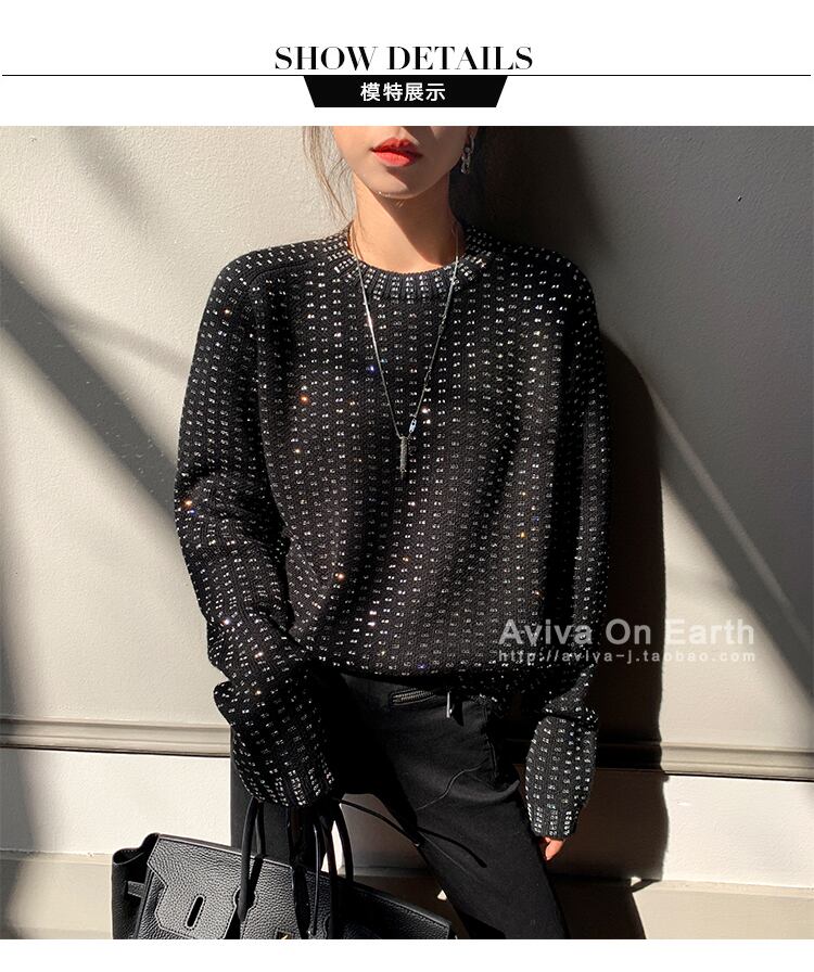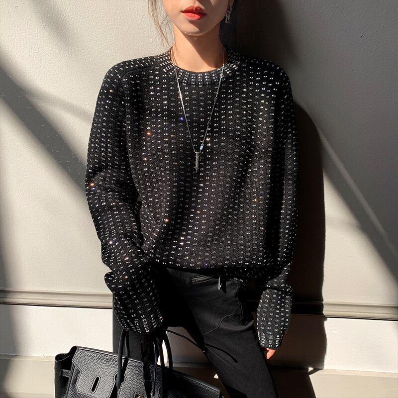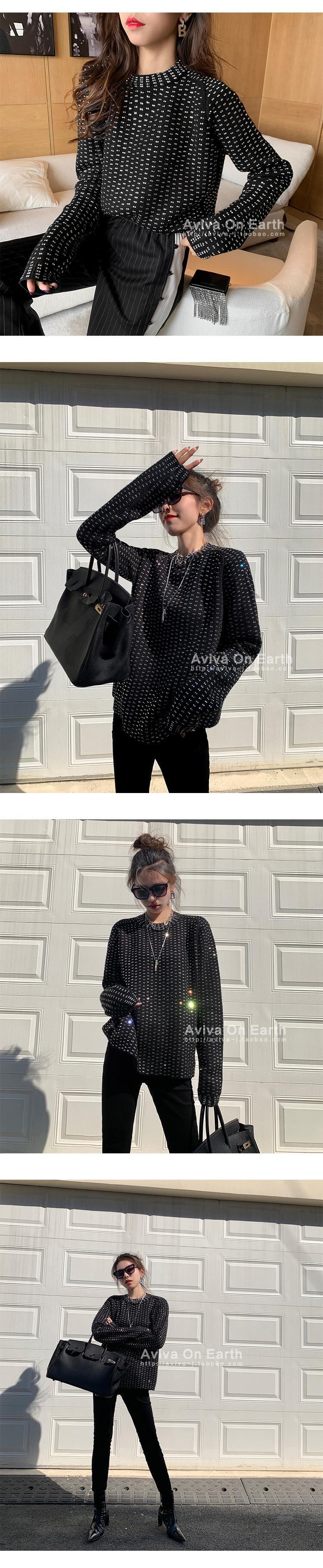 ♥ ラインストーンブラックスタイルセーター レディーススプリング 春物 ♥♥欧州 ヨーロッパ アイドル ZARA フォーエバー21 GAP H&M WEGO HONEYS MUJI GU UNIQLO dholic babyGAP FOREVER21 Old Navy 韓国 K-POP Kpop 韓流スター BTS TWICE NiziU BLACKPINK ルイ・ヴィトン エルメス グッチ プラダ イブサンローラン シャネル ラフシモンズ BB70464998227 | miel style clothing