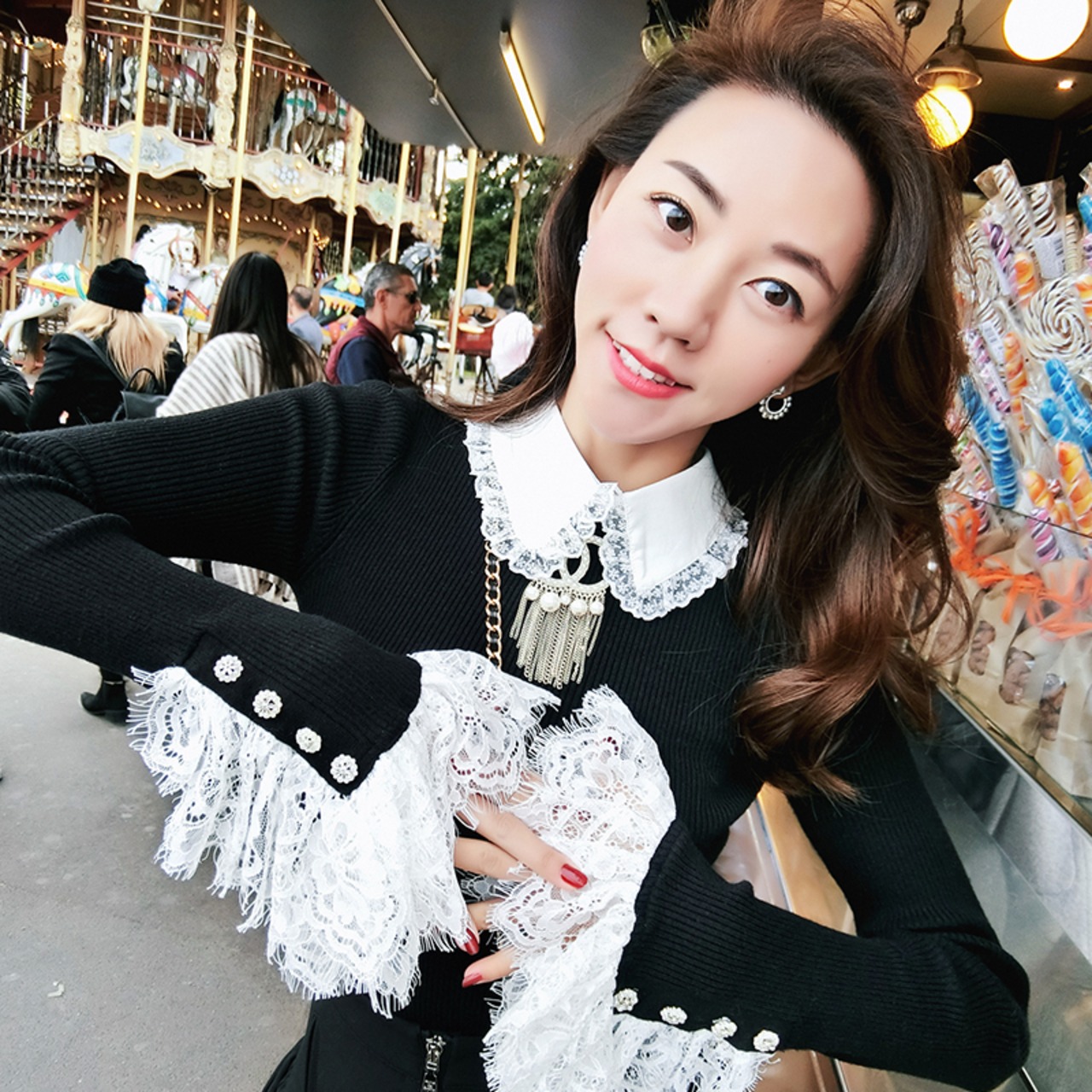 ♥ ブラックセーター レーススリーブニットカラートップス レッド ステッチ ♥♥欧州 ヨーロッパ アイドル ZARA フォーエバー21 GAP H&M WEGO HONEYS MUJI GU UNIQLO dholic babyGAP FOREVER21 Old Navy 韓国 K-POP Kpop 韓流スター BTS TWICE NiziU BLACKPINK ルイ・ヴィトン エルメス グッチ プラダ イブサンローラン シャネル ラフシモンズ BB68623309998 | miel style clothing