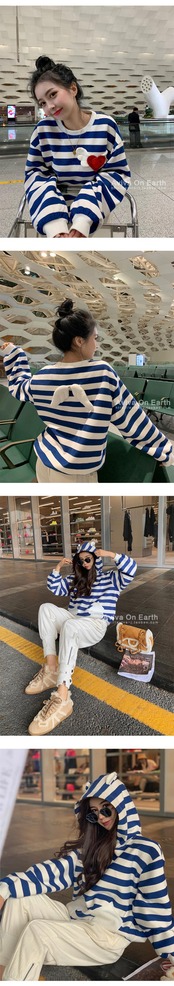 ♥ ブルーホワイトストライプベルベットルーズセーター Oネック ♥♥欧州 ヨーロッパ アイドル ZARA フォーエバー21 GAP H&M WEGO HONEYS MUJI GU UNIQLO dholic babyGAP FOREVER21 Old Navy 韓国 K-POP Kpop 韓流スター BTS TWICE NiziU BLACKPINK ルイ・ヴィトン エルメス グッチ プラダ イブサンローラン シャネル ラフシモンズ BB38969272899 | miel style clothing