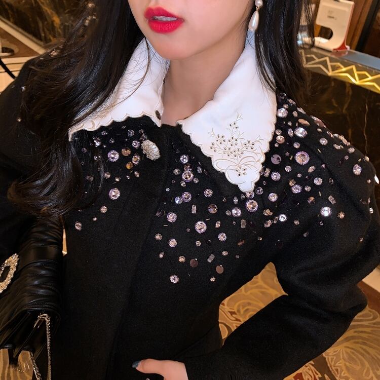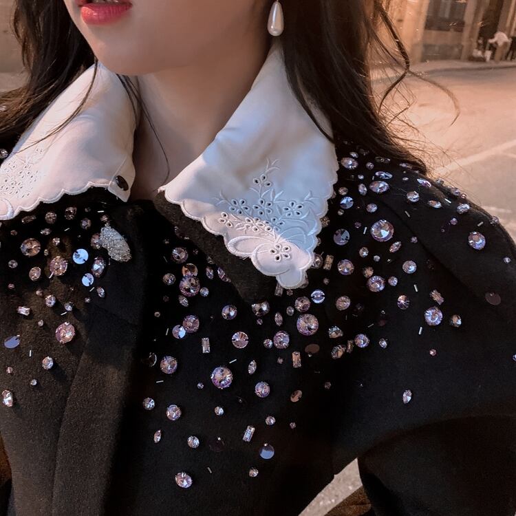 ♥ ラインストーンレースカラーウールコート ♥♥欧州 ヨーロッパ アイドル ZARA フォーエバー21 GAP H&M WEGO HONEYS MUJI GU UNIQLO dholic babyGAP FOREVER21 Old Navy 韓国 K-POP Kpop 韓流スター BTS TWICE NiziU BLACKPINK ルイ・ヴィトン エルメス グッチ プラダ イブサンローラン シャネル ラフシモンズ BB87738802593 | miel style clothing