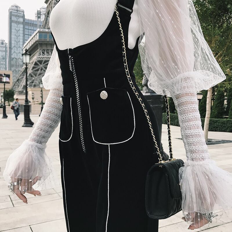 ♥ ベルベットオーバーオール レディースルーズハイウェストパンツ ブラック ♥♥欧州 ヨーロッパ アイドル ZARA フォーエバー21 GAP H&M WEGO HONEYS MUJI GU UNIQLO dholic babyGAP FOREVER21 Old Navy 韓国 K-POP Kpop 韓流スター BTS TWICE NiziU BLACKPINK ルイ・ヴィトン エルメス グッチ プラダ イブサンローラン シャネル ラフシモンズ BB1288925620 | miel style clothing