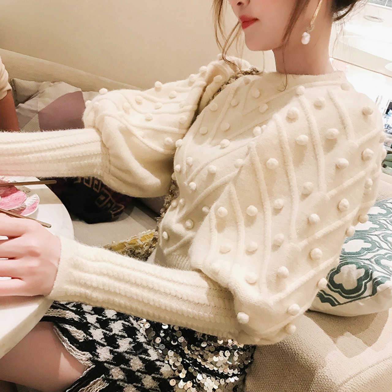 ♥ ホワイトスリーブセーター レディーススプリングショートニットシャツ スリムプルオーバー 春物 ♥♥欧州 ヨーロッパ アイドル ZARA フォーエバー21 GAP H&M WEGO HONEYS MUJI GU UNIQLO dholic babyGAP FOREVER21 Old Navy 韓国 K-POP Kpop 韓流スター BTS TWICE NiziU BLACKPINK ルイ・ヴィトン エルメス グッチ プラダ イブサンローラン シャネル ラフシモンズ BB6517372404 | miel style clothing