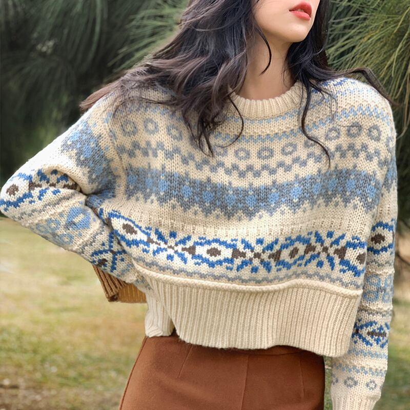 ♥ スタイルジャカードパターンスタンダードウールセーター レディースウィンター レトロ 冬物 ステッチ ♥♥欧州 ヨーロッパ アイドル ZARA フォーエバー21 GAP H&M WEGO HONEYS MUJI GU UNIQLO dholic babyGAP FOREVER21 Old Navy 韓国 K-POP Kpop 韓流スター BTS TWICE NiziU BLACKPINK ルイ・ヴィトン エルメス グッチ プラダ イブサンローラン シャネル ラフシモンズ BB42950810047 | miel style clothing