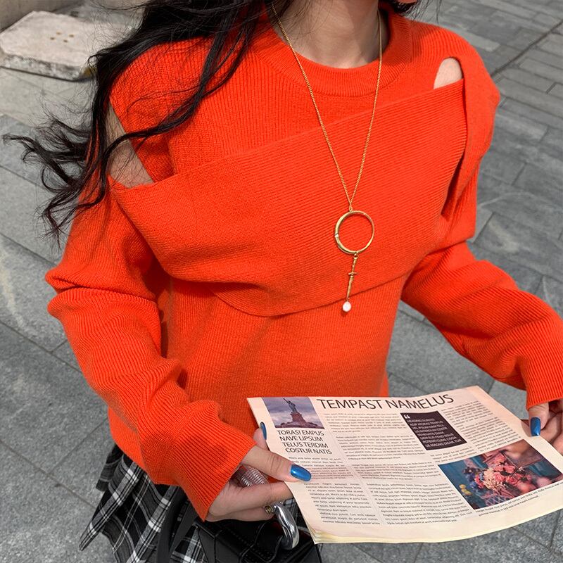 ♥ オレンジ薄手ニット レディーススプリングルーズ長袖スリーブトップス ロング 春物 ♥♥欧州 ヨーロッパ アイドル ZARA フォーエバー21 GAP H&M WEGO HONEYS MUJI GU UNIQLO dholic babyGAP FOREVER21 Old Navy 韓国 K-POP Kpop 韓流スター BTS TWICE NiziU BLACKPINK ルイ・ヴィトン エルメス グッチ プラダ イブサンローラン シャネル ラフシモンズ BB97875541659 | miel style clothing