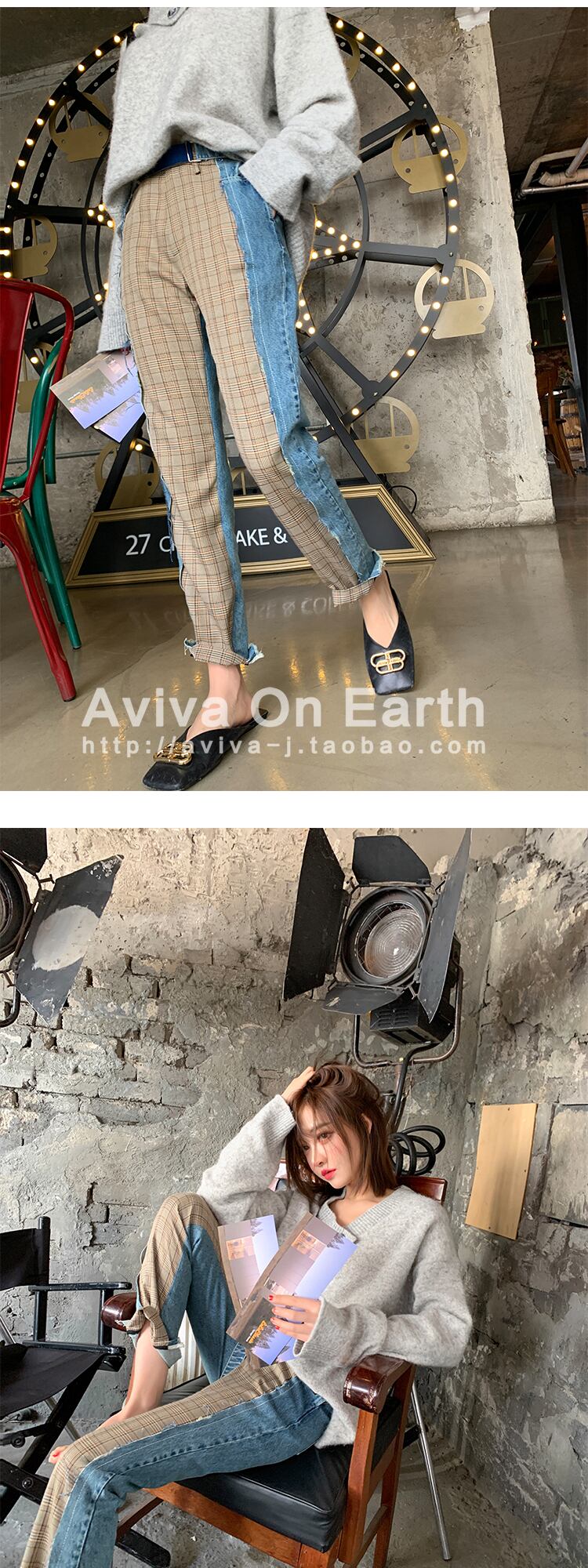♥ 格子柄ハイウェストウェストジーンズ レディースルーズパンツ ステッチ ♥♥欧州 ヨーロッパ アイドル ZARA フォーエバー21 GAP H&M WEGO HONEYS MUJI GU UNIQLO dholic babyGAP FOREVER21 Old Navy 韓国 K-POP Kpop 韓流スター BTS TWICE NiziU BLACKPINK ルイ・ヴィトン エルメス グッチ プラダ イブサンローラン シャネル ラフシモンズ BB64834863718 | miel style clothing