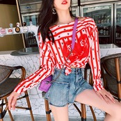 ♥ トップス レッドシャツ ルーズストライプ ♥♥欧州 ヨーロッパ アイドル ZARA フォーエバー21 GAP H&M WEGO HONEYS MUJI GU UNIQLO dholic babyGAP FOREVER21 Old Navy 韓国 K-POP Kpop 韓流スター BTS TWICE NiziU BLACKPINK ルイ・ヴィトン エルメス グッチ プラダ イブサンローラン シャネル ラフシモンズ BB989310552 | miel style clothing