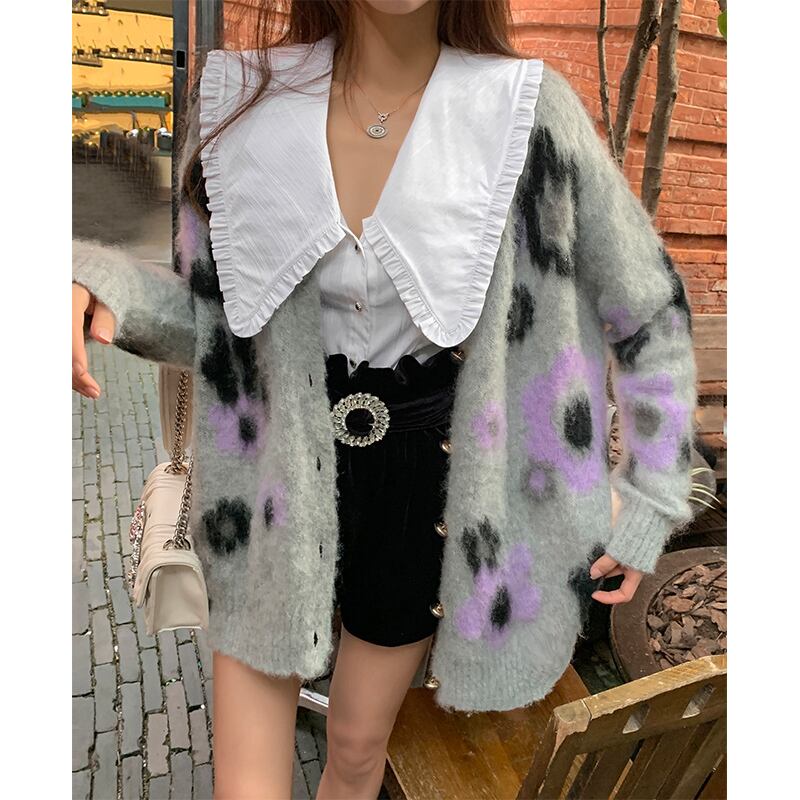 ♥ カラーFlowerデザイン ジャカードニットカーディガンジャケット トップス 大人ガーリー スウィート キュート カジュアル フラワーデザイン ♥♥欧州 ヨーロッパ アイドル ZARA フォーエバー21 GAP H&M WEGO HONEYS MUJI GU UNIQLO dholic babyGAP FOREVER21 Old Navy 韓国 K-POP Kpop 韓流スター BTS TWICE NiziU BLACKPINK ルイ・ヴィトン エルメス グッチ プラダ イブサンローラン シャネル ラ | miel style clothing