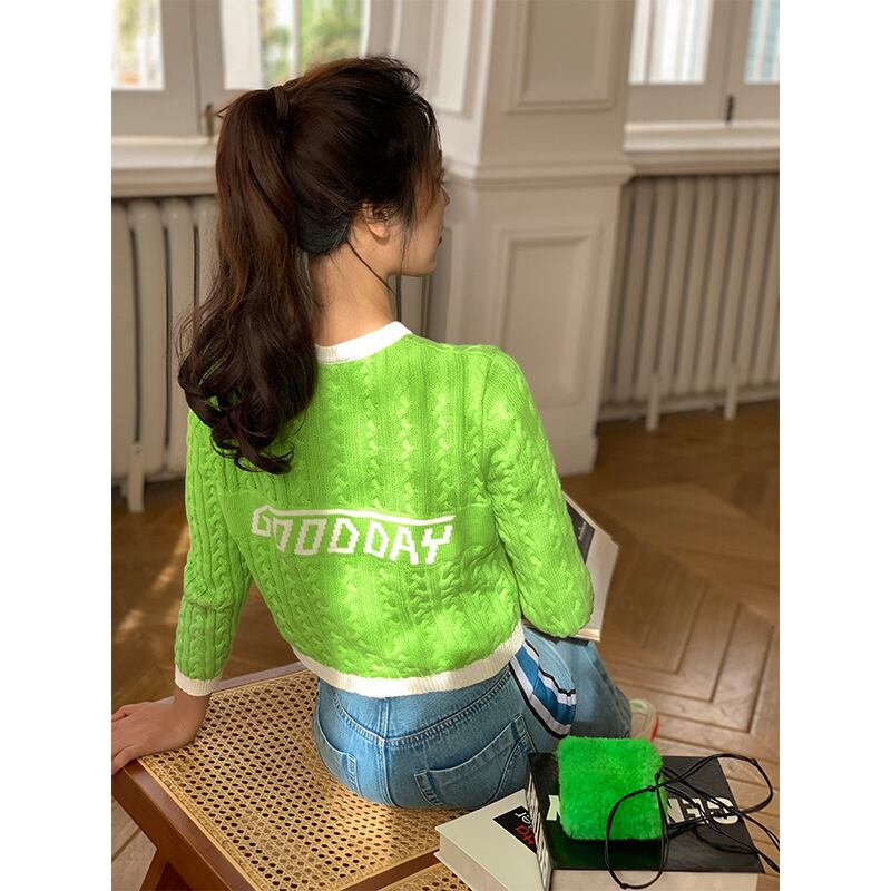 ♥ グリーンショートウールニットカーディガンジャケット 薄手 ♥♥欧州 ヨーロッパ アイドル ZARA フォーエバー21 GAP H&M WEGO HONEYS MUJI GU UNIQLO dholic babyGAP FOREVER21 Old Navy 韓国 K-POP Kpop 韓流スター BTS TWICE NiziU BLACKPINK ルイ・ヴィトン エルメス グッチ プラダ イブサンローラン シャネル ラフシモンズ BB7373705250