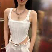 ♥ ホワイトショートスリムノースリーブトップス ♥♥欧州 ヨーロッパ アイドル ZARA フォーエバー21 GAP H&M WEGO HONEYS MUJI GU UNIQLO dholic babyGAP FOREVER21 Old Navy 韓国 K-POP Kpop 韓流スター BTS TWICE NiziU BLACKPINK ルイ・ヴィトン エルメス グッチ プラダ イブサンローラン シャネル ラフシモンズ BB31971144279